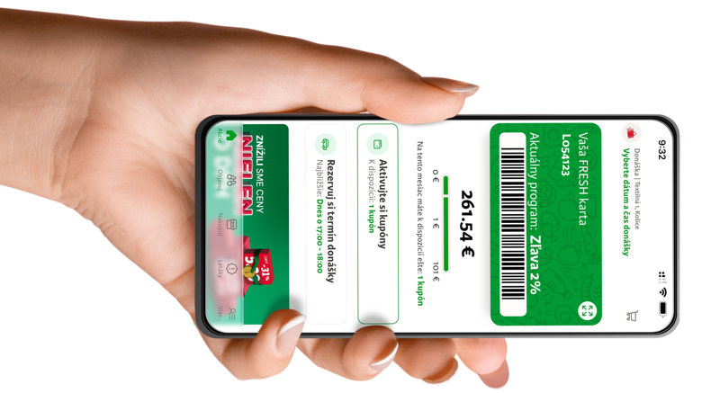 Zabudnite na plastové karty v preplnenej peňaženke. Sledujte svoje nákupy, zľavy a skenujte svoju FRESH kartu priamo z mobilu.