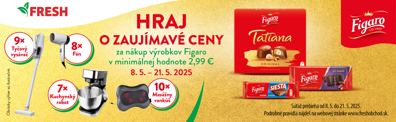 Ako sa zapojiť do súťaže? Stačí zakúpiť akékoľvek výrobky Figaro v predajniach potraviny FRESH v minimálnej hodnote 2,99€. Na pokladničný doklad napíšte svoje meno, priezvisko, adresu, kontakt a vlastnoručný podpis a zašlite ho na adresu Potraviny FRESH, Textilná 1, 040 12 Košice pričom na obálke uvediete heslo súťaže: "Figaro súťaž". Držíme palce :)